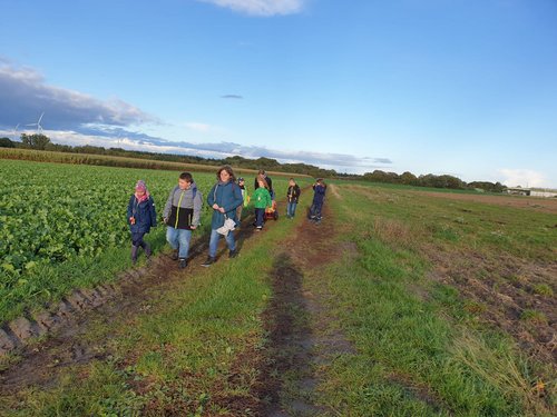 Wir sind zusammen mit euch auf eine Bollerwagentour mit vielen Spielen gegangen und haben anschließend Pommes gegessen.
